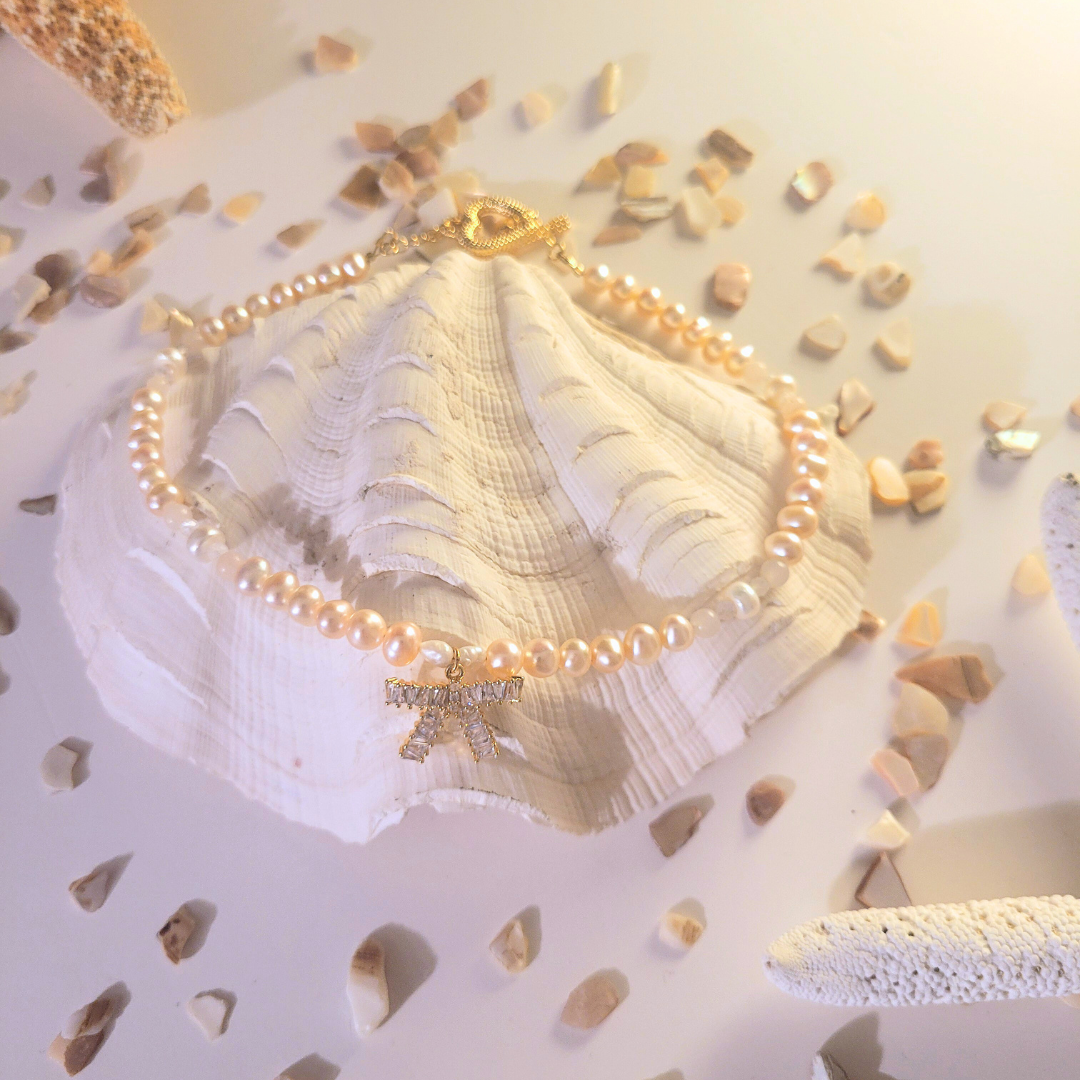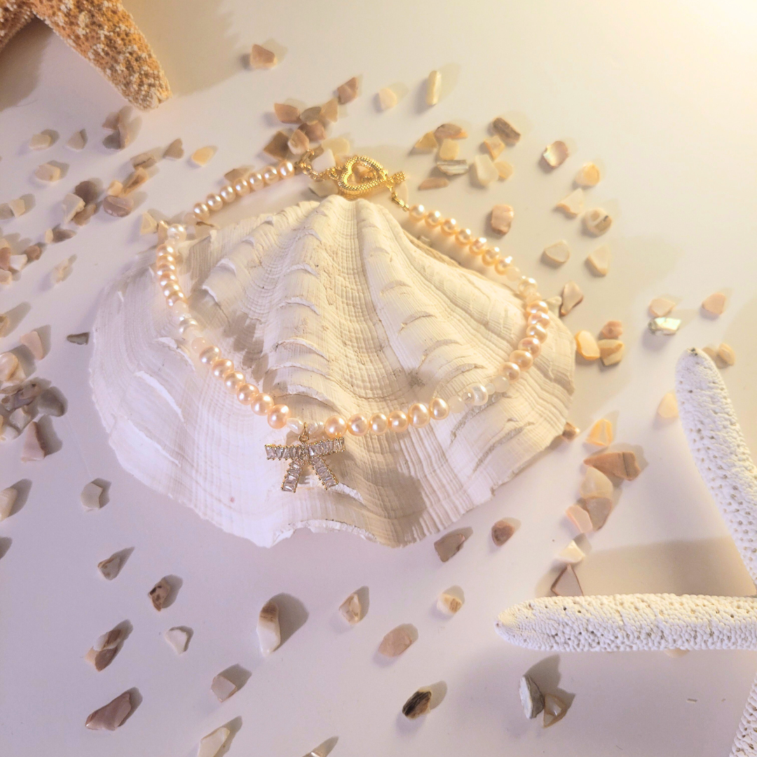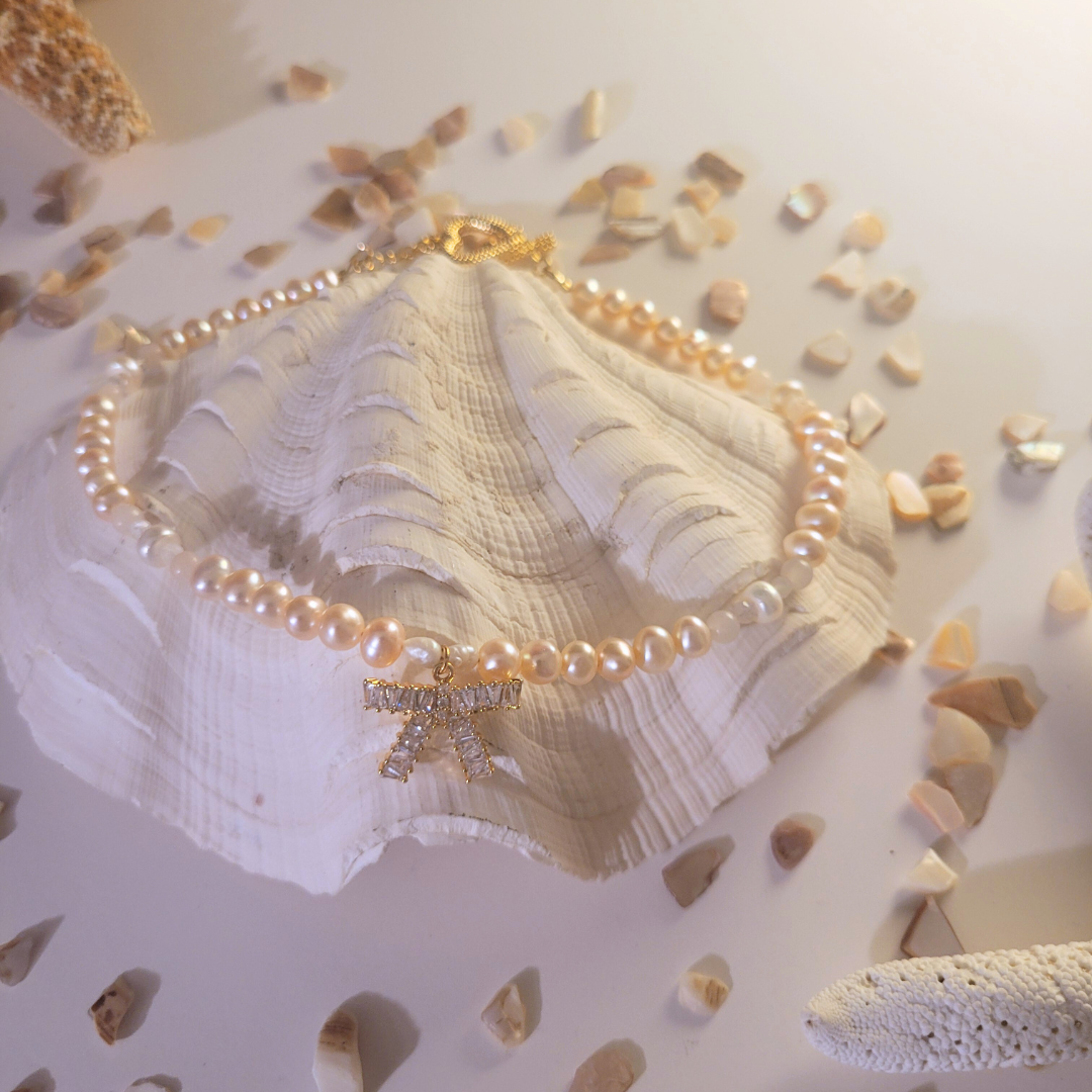 Handmade necklace with pearl, freshwater pearl, moonstone, 18k gold plated charm and attachment. Meaning of crystals will be included in your package. 16 in necklace