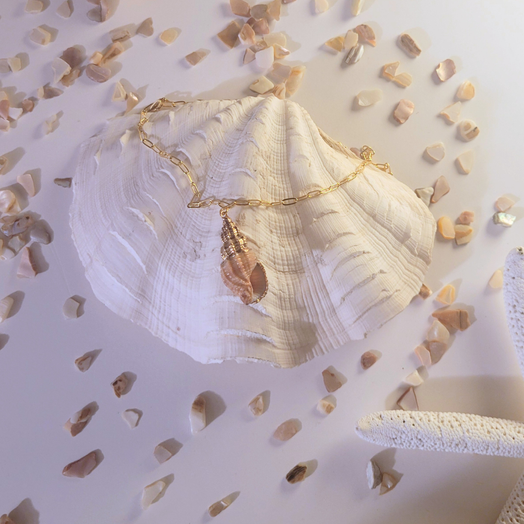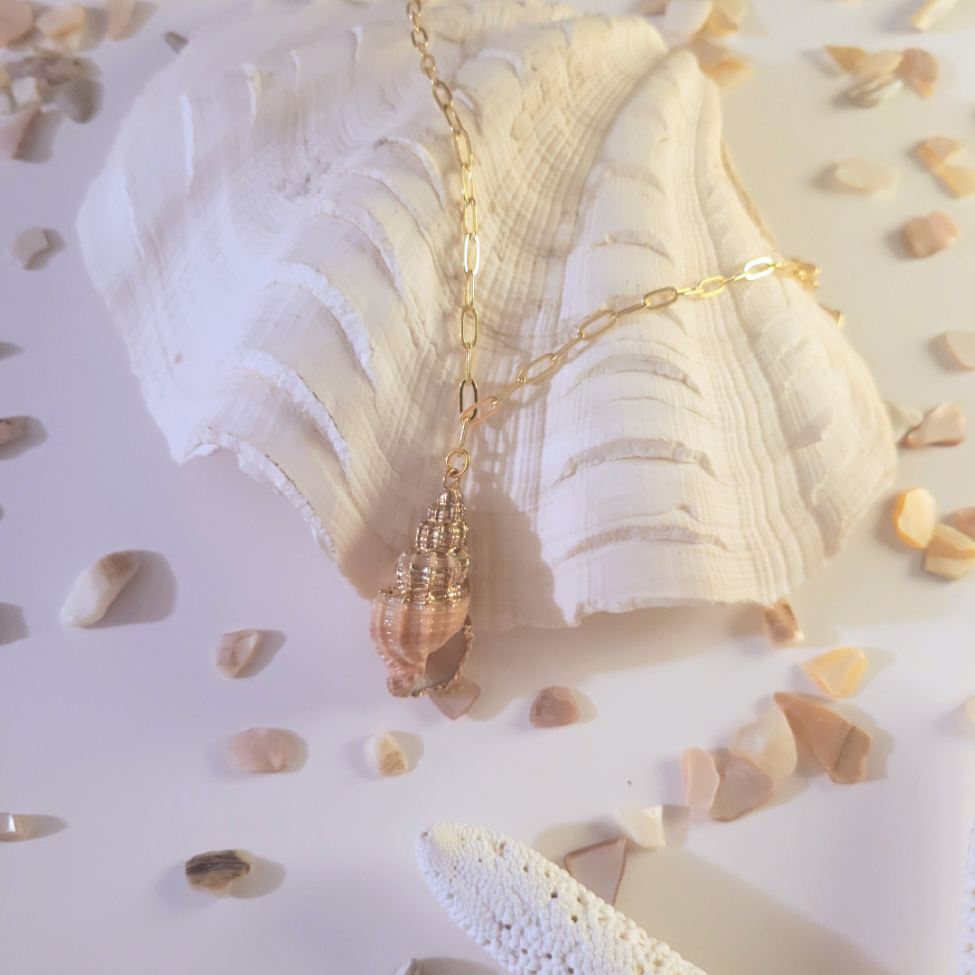 18k Gold plate paper clip chain, with a real seashell charm, 16 in necklace