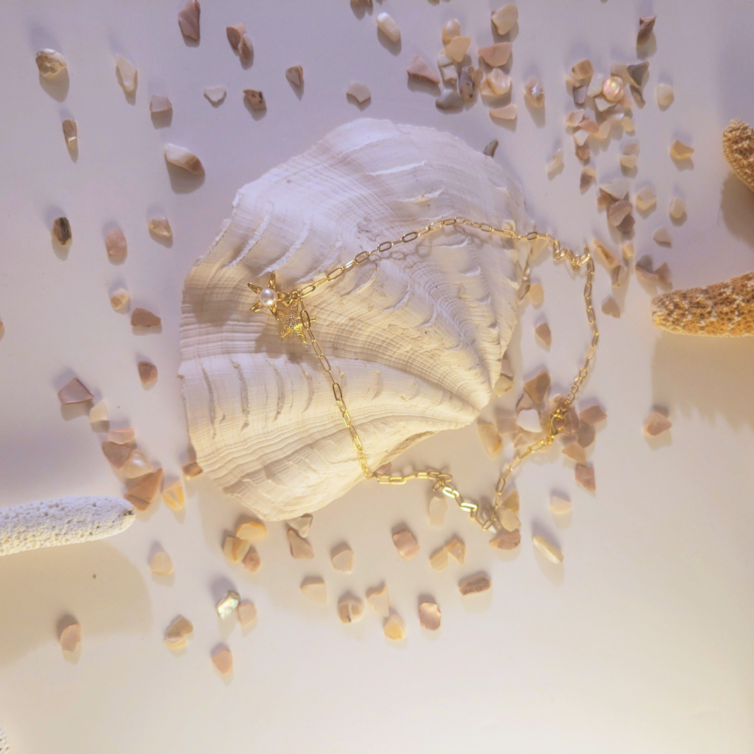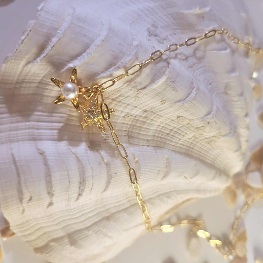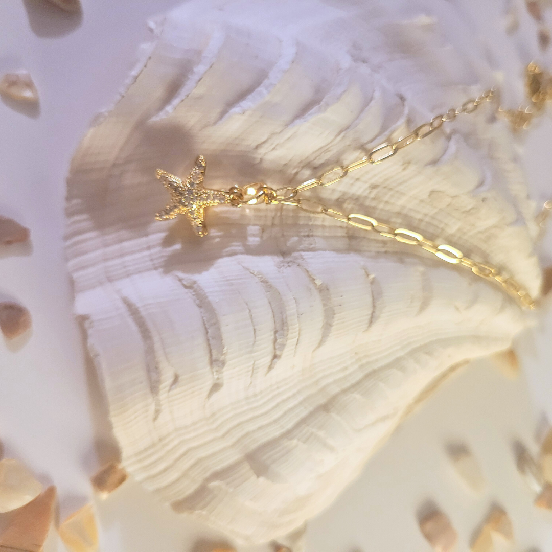Handmade starfish necklace, made out of 18k gold plated. 16in necklace