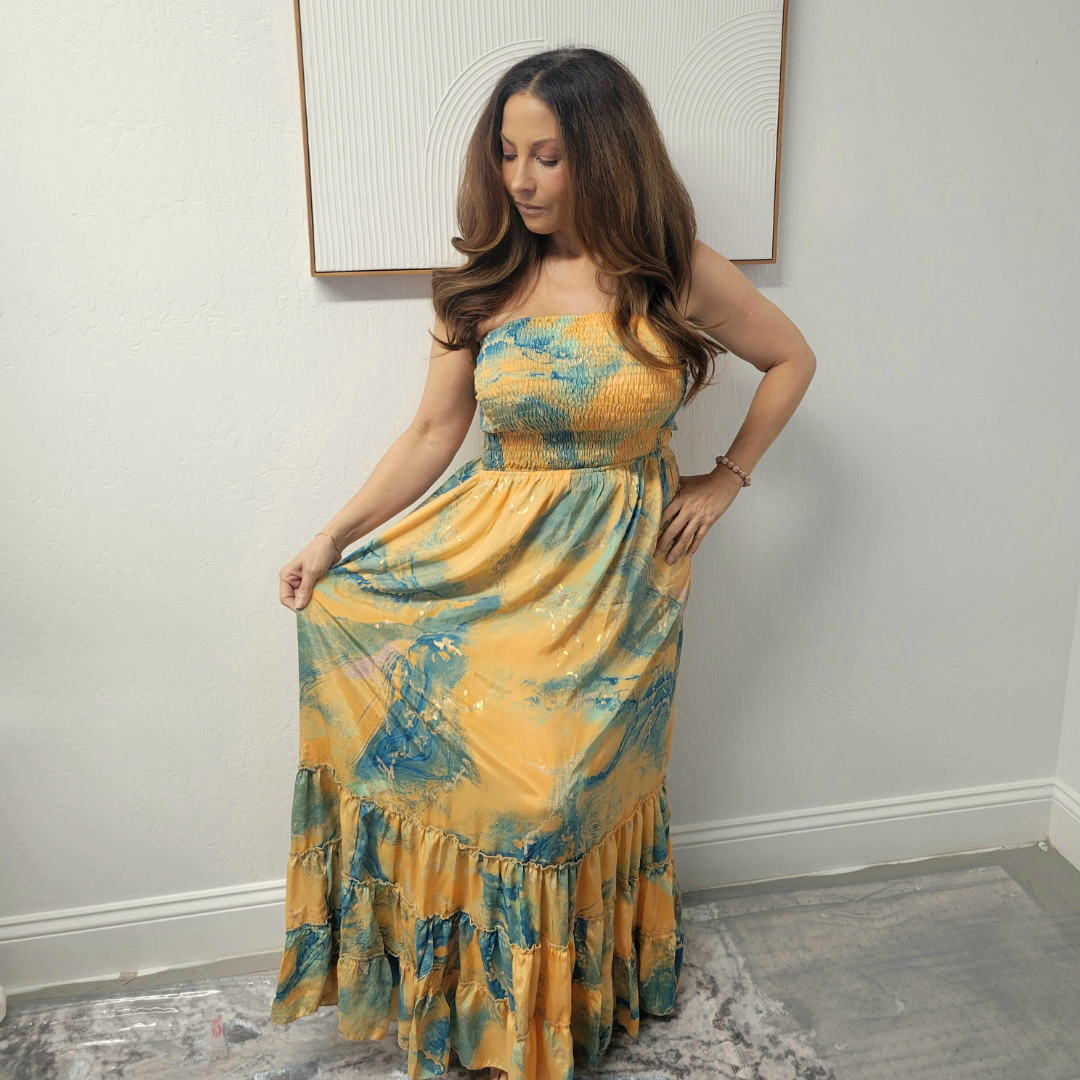 This beautiful Tube Top Bohemian Dress is designed to fit sizes one to 14, making you feel lovely and confident.